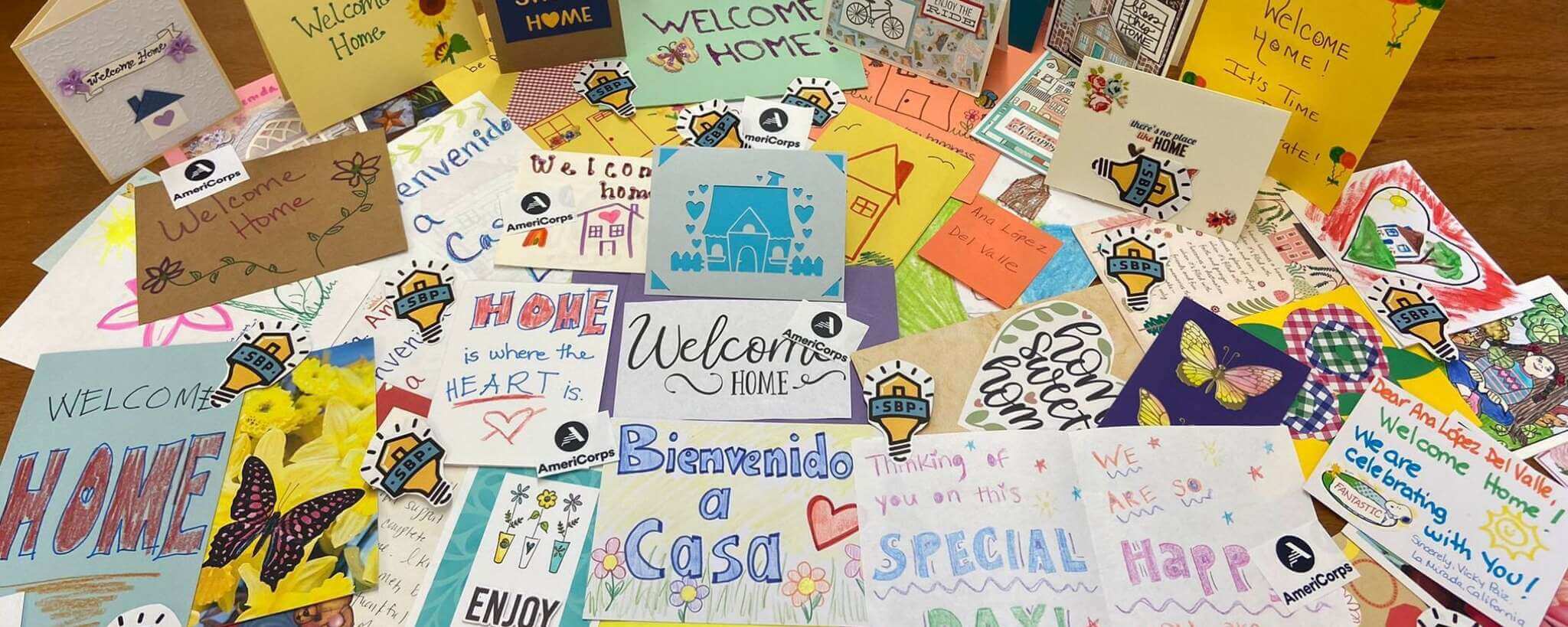 Farmers Insurance, one of our long-standing and deeply supportive corporate partners, is crucial to that recovery process and helping to build a shared sense of purpose and community. Beyond Farmer’s generous financial contributions and exemplary volunteer support on SBP’s worksites, their employees help welcome our clients back home by hand crafting countless beautiful Welcome-Home cards. These cards are delivered to our clients during their Welcome Home Parties across the country in disaster-affected communities in Florida, Texas, Louisiana, and Puerto Rico. When they open them, they are astonished to read the many heartfelt congratulations. Our clients express genuine surprise and excitement while reading each one! See one of the late-night text messages we received from one of our clients from Houma, LA:
